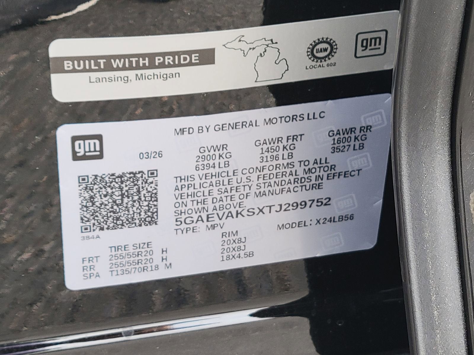 - Tires, P255/55R20 all-season blackwall (STD)