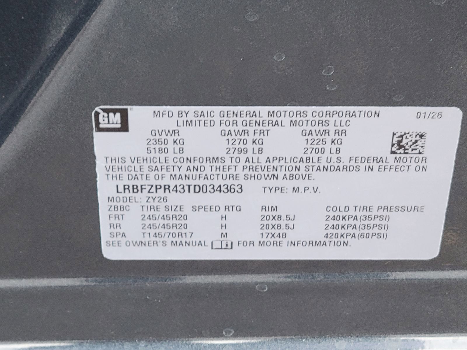 - Tires, P245/45R20 all-season