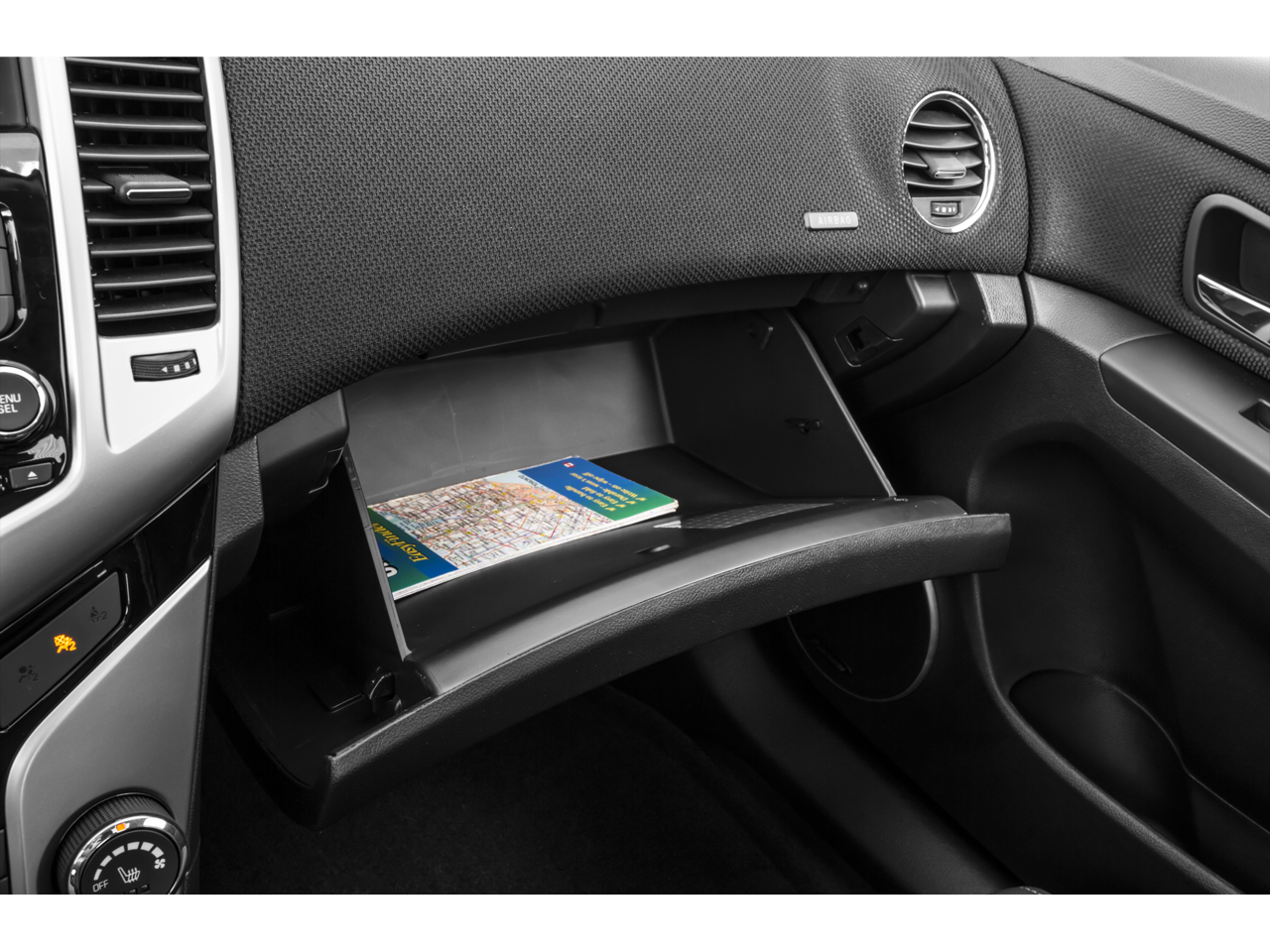 - LS, 1LT and ECO Interior Appearance includes Premium cloth seating, Silver-painted center stack and instrument panel cluster accent rings, and open instrument panel storage bin