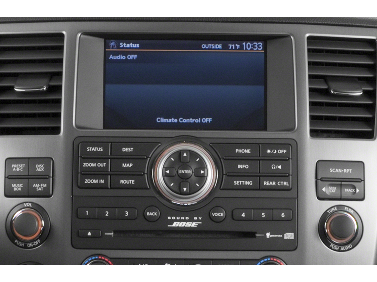 - Radio: Digital Bose 265-Watt AM/FM/CD -inc: 11 speakers plus subwoofer, SiriusXM Satellite Radio, auxiliary input jack, USB, VTR jack, illuminated steering wheel mounted controls, Bluetooth® hands-free phone system and 7" color display