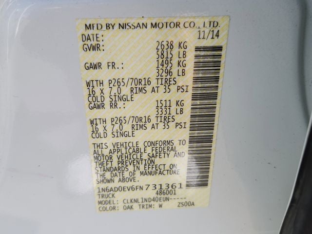 - Vehicle Name: Nissan Frontier