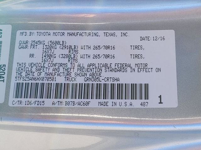 - Rear Tire Size: P265/70SR16