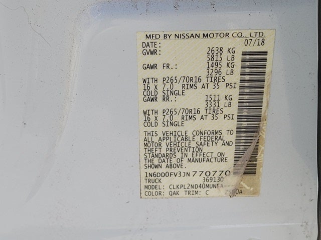 - Vehicle Name: Nissan Frontier