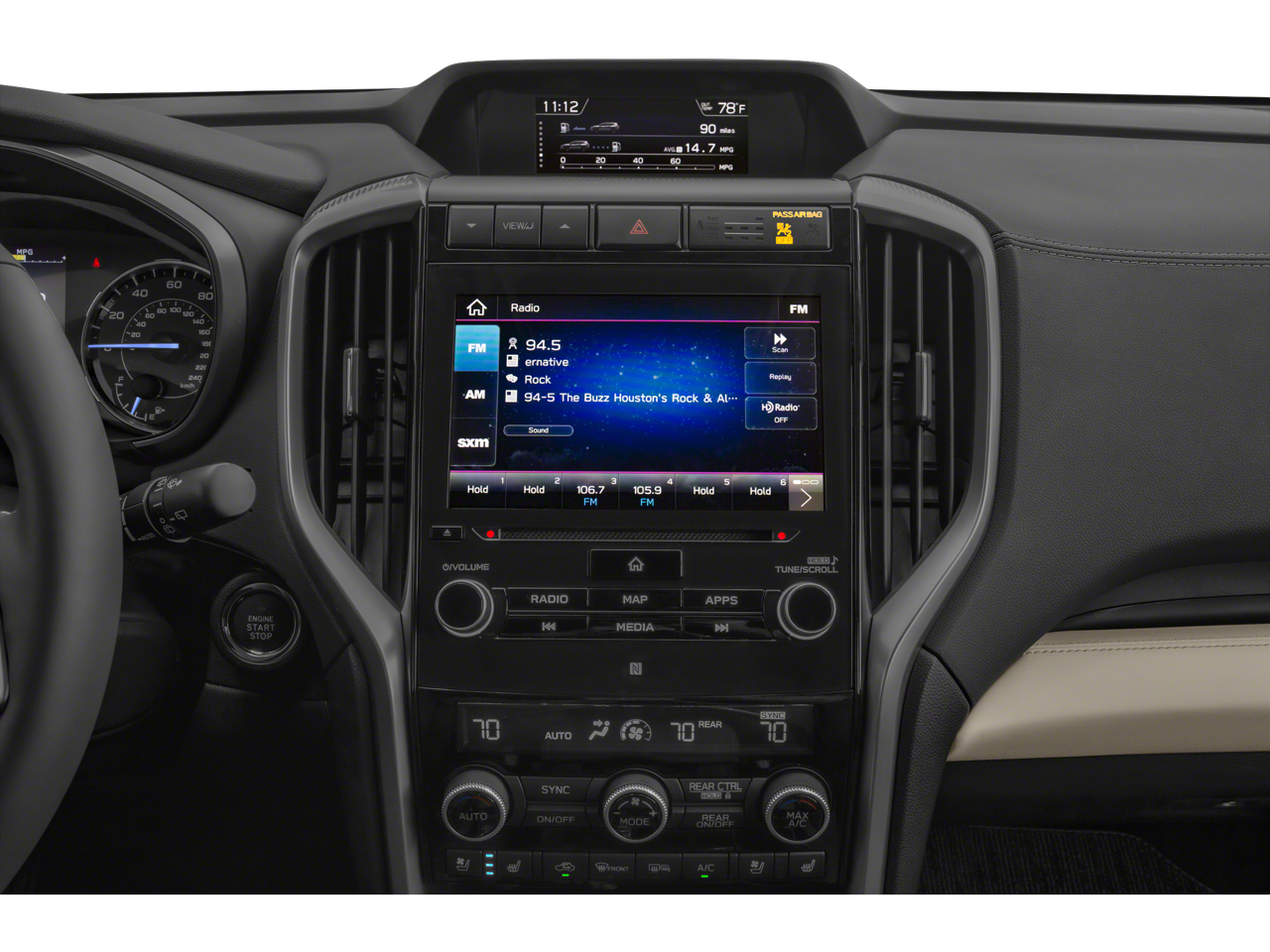 - Radio: Subaru STARLINK 8.0" Multimedia Nav System -inc: AM/FM stereo HD Radio w/single disc CD player, MP3/WMA/CRR/RW file capability, multi-touch gesture high resolution display screen, voice activated controls for radio and navigation, Bluetooth® audio streaming and hands-free phone connectivity (applicable w/compatible cell phone), Bluetooth® hands-free SMS text messaging connectivity (applicable w/compatible cell phone), Near Field Communication (NFC), iPod control capability, SiriusXM All Access radio (4 months free trial/subscription required after), SiriusXM Travel Link (3 years free trial/subscription required after), SiriusXM Traffic (3 years free trial/subscription required after), smartphone integration for Aha, Android Auto, CarPlay, Pandora and STARLINK cloud applications, TomTom navigation system update w/USB/Map Over The Air (MOTA) (3 years free map updates), steering wheel controls for audio and Bluetooth®, harman/kardon quantum logic surround sound speaker system w/14 speakers, subwoofer and harman/kardon 792 watt equivalent maximum output amplifier, 3.5mm auxiliary input jack and front, second and third row dual USB ports