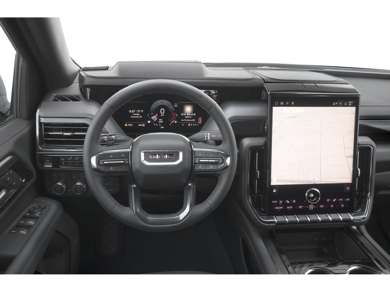 - Audio System, 16.8" diagonal Premium GMC Infotainment System with high contrast display and local backlight dimming, with Google built-in compatibility, including navigation capability, color touch-screen, multi-touch display, connected apps, personalized profiles for each driver's settings, and Natural Voice Recognition